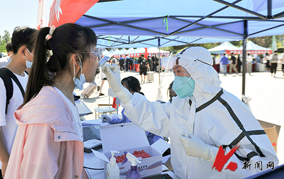 记者在报到现场看到,新生们保持着一米的安全距离,排队进入设在博雅广场和龙源学生公寓的迎新接待处,并进行核酸检测。他们受到了热情的接待,入学手续办理、用品领取、相关事宜咨询都在井然有序地进行着。