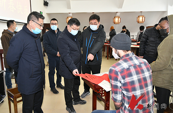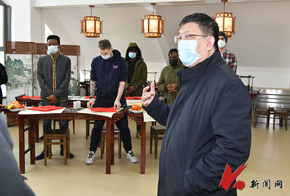 校领导还走访了留学生和研究生宿舍,并为留学生代表和5位研究生发放了新年福袋、水饺等慰问品。(张金玲文/金会刚摄)