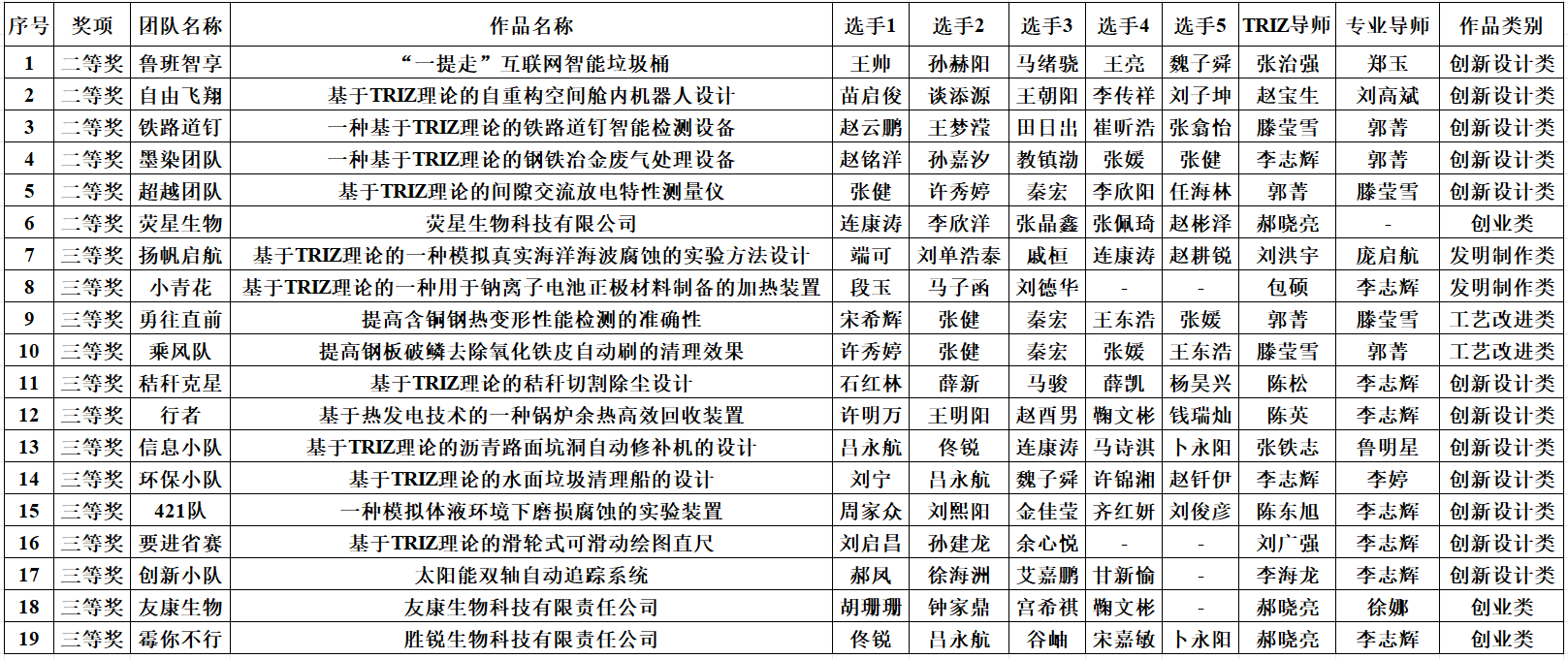 大赛依托创新创业学院和材料与冶金学院联合主办、TRIZ协会承办的第六届环亚(中国)HUANYA·官方网页版创新方法大赛,评选出的优秀作品,在辽宁省大学生创新创业管理共享平台,经负责老师指导、修稿、审核、推荐43项作品,经专家网络初评、现场答辩评审,最终环亚(中国)HUANYA·官方网页版获得二等奖6项、三等奖13项,获奖数量创历史新高。