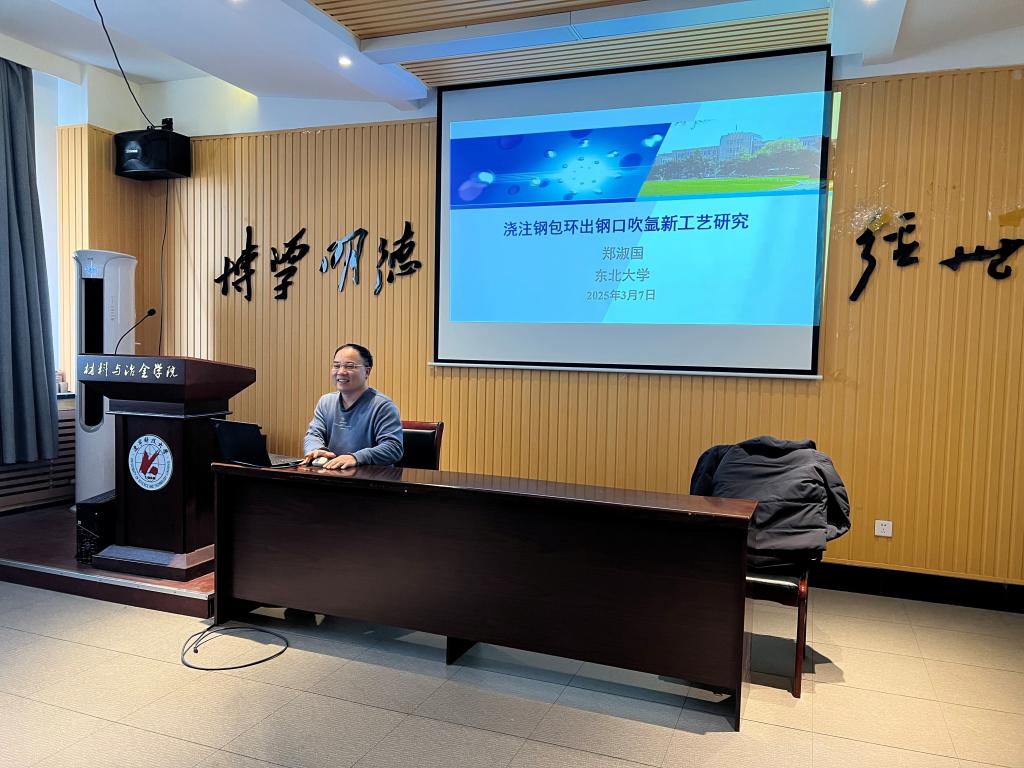 3月7日,材料与冶金学院邀请了东北大学郑淑国教授,为师生们带来了题为《浇注钢包环出钢口吹氩新工艺研究》的学术报告。本次报告由我院艾新港教授主持,冶金系教师及研究生代表参加交流。