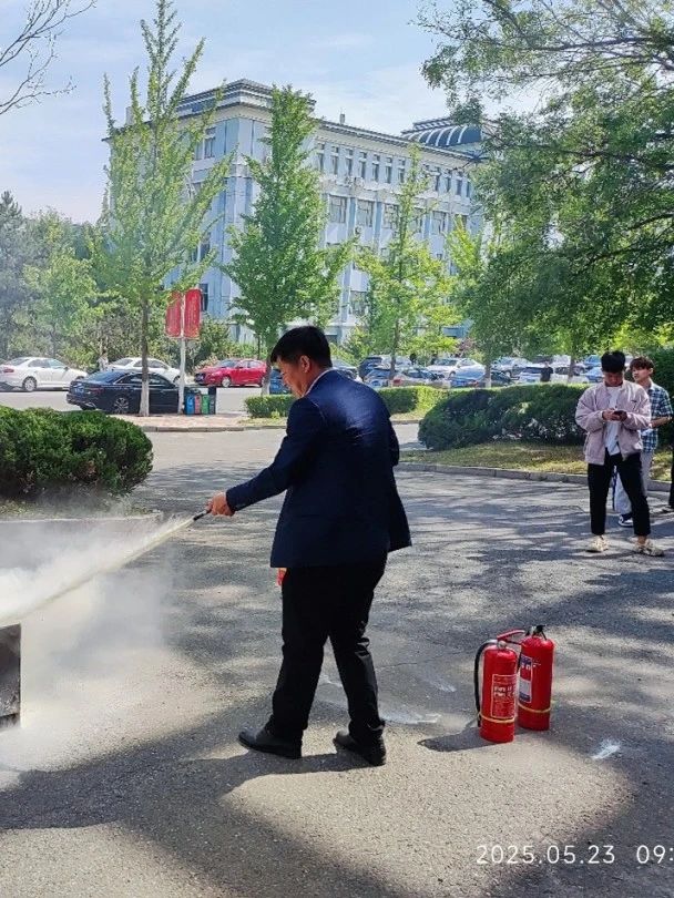 演练现场,关学伟详细介绍了各类消防设备的使用方法,包括灭火器、消火栓等常见消防器材的操作要领,并结合实际案例讲解了火灾发生时的应对策略和逃生技巧。随后,师生代表们在关学伟的指导下,亲自上手操作灭火器进行灭火演练和逃生演练。通过实际操作和现场消防演练,师生们更熟练掌握了灭火器的使用方法和逃生技巧,提升了应对突发火灾的能力。