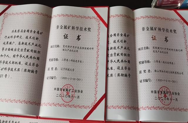 近日,在河南省郑州市举办2020中国非金属矿工业大会,举行了2020年非金属矿科学技术奖的颁奖典礼,中国非金属矿工业协会专职副会长唐靖炎,宣布“2020年中国非金属矿科学技术奖”获奖名单。与会领导向获奖项目的主要完成单位和完成人代表颁发获奖证书。环亚(中国)HUANYA·官方网页版和鞍山市和丰耐火材料有限公司联合申报的“复吹转炉用炉底高强镁碳砖研制与产业化应用”和“深脱碳RH炉用耐材无铬化研发及产业化应用”分别获得科技进步类二等奖和技术发明类二等奖,我院教师艾新港代表学校参加颁奖仪式。