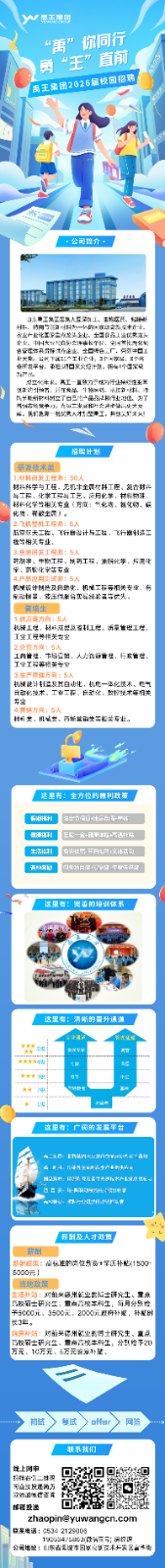 成立46年来,禹王一直致力于成为行业持续性变革创新的引领者,在特陶节能新材料、食品、生物医药、粘接新材料四大方向中树立了自己的产品品牌和行业地位。为了增强市场竞争力,为员工发展和社会进步做出更大贡献,我们急需一批优秀人才加盟禹王,共创美好未来!
