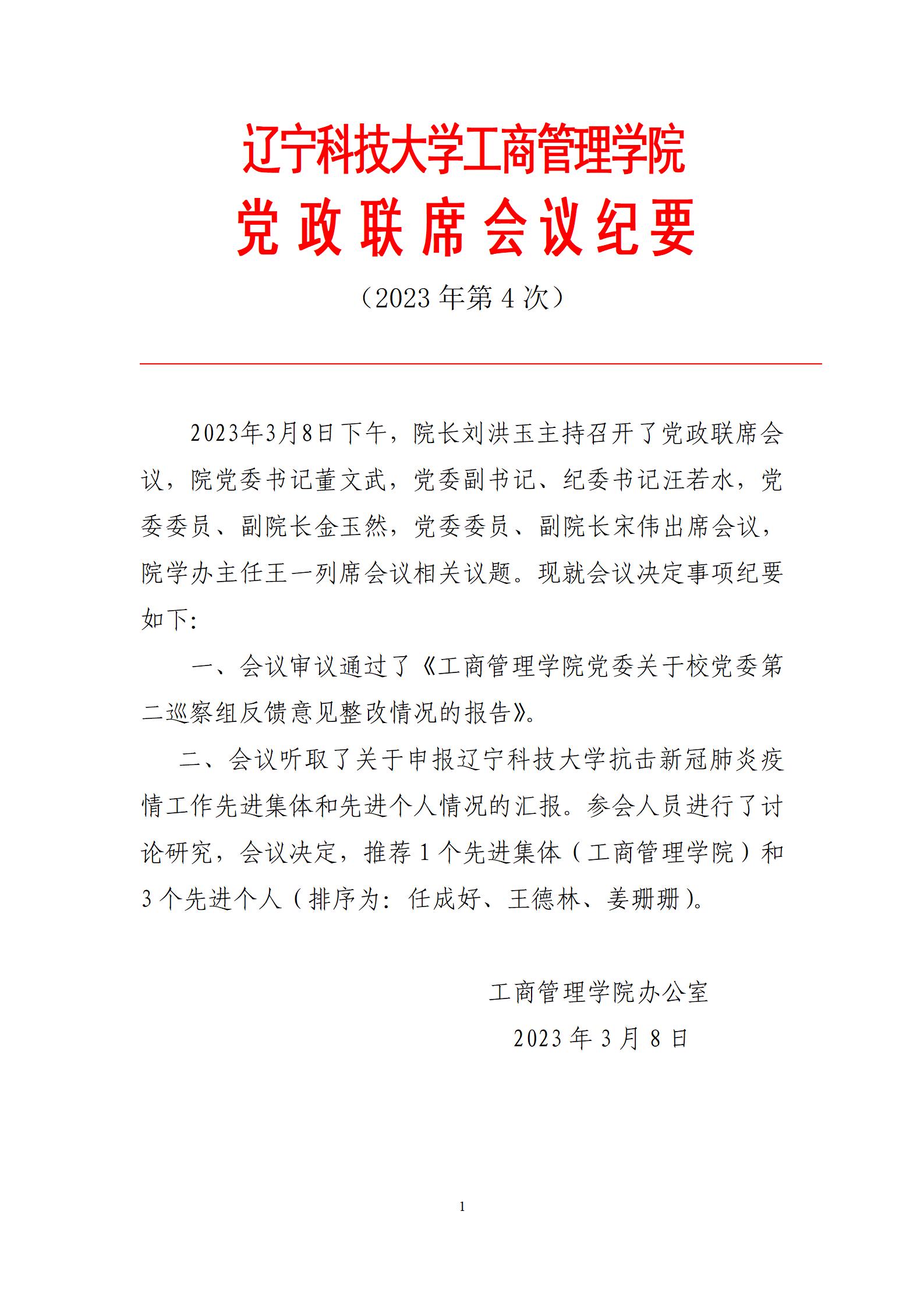 环亚(中国)HUANYA·官方网页版工商管理学院党政联席会议纪要(2023年第4次)