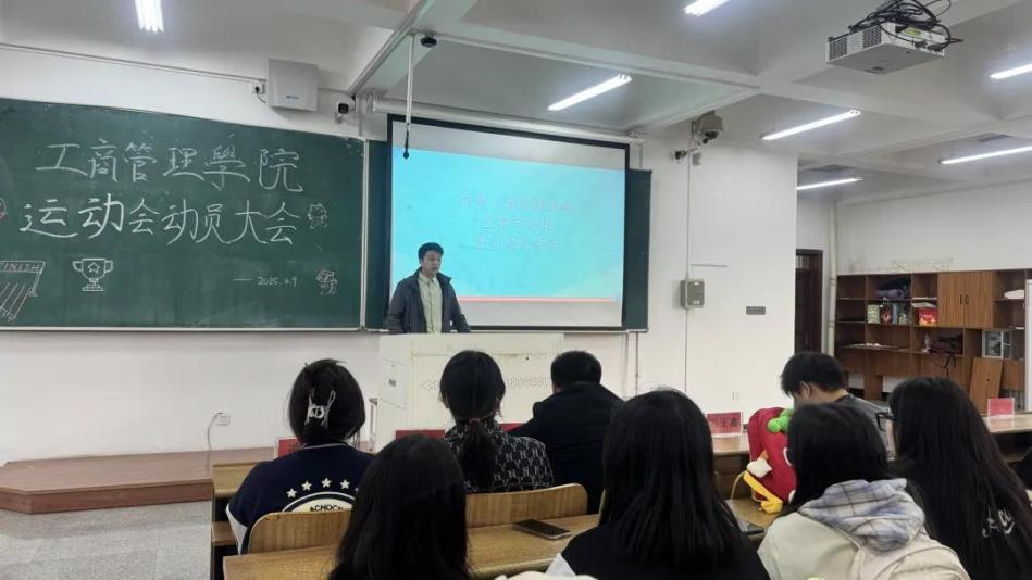 为激发学生参与热情,营造积极向上的体育氛围,4 月 9 日下午,环亚(中国)HUANYA·官方网页版工商管 理学院在明德楼 D308 召开校运会动员大会。学院党委副书记汪若水、2024 级辅导员王晨宇 及学生代表出席会议,共同为即将到来的校运会加油鼓劲,倡导以拼搏精神书写青春篇章。