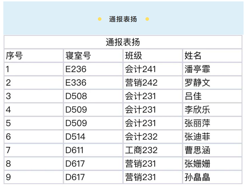 希望大家向优秀寝室、通报表扬同学学习。宿舍是一个温馨的港湾,它的整洁干净离不开大家共同的努力,让我们一起努力创造一个有序、卫生的生活环境。