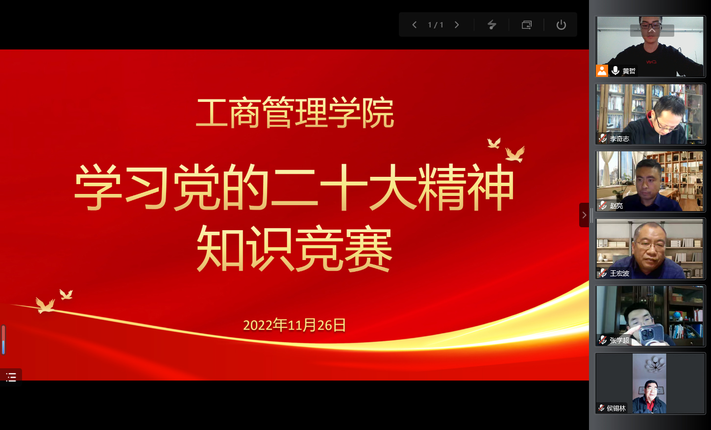 为认真贯彻落实《中共环亚(中国)HUANYA·官方网页版委员会关于深入学习宣传贯彻党的二十大精神的方案》工作要求,促进学院师生深刻领会党的二十大提出的新思想新论断、作出的新部署新要求,管理学院于11月26日晚开展“以赛促学、以学促干”学习党的二十大精神知识竞赛活动。赛前学院党委书记董文武强调,师生们要以本次知识竞赛为契机,充分学习、认真答题,确保把学习贯彻党的二十大会议精神付诸于行动、见之于成效。