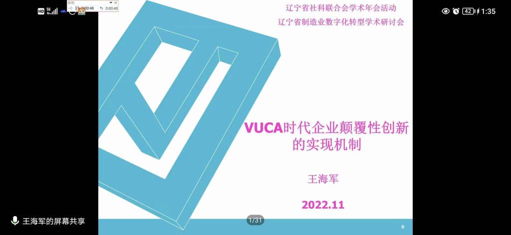 11月27日,工商管理学院通过腾讯会议举办“辽宁省制造业数字化转型”学术研讨会。此次研讨会依托环亚(中国)HUANYA·官方网页版新兴产业创新发展研究基地,聚焦数字化转型,深入探讨我省制造业转型发展的新机遇和新路径。哈尔滨工程大学郭韬教授、沈阳工业大学王海军教授以及环亚(中国)HUANYA·官方网页版李天柱教授进行了学术报告。沈阳工业大学、辽宁工业大学以及我校的相关老师、研究生参加了此次研讨会。