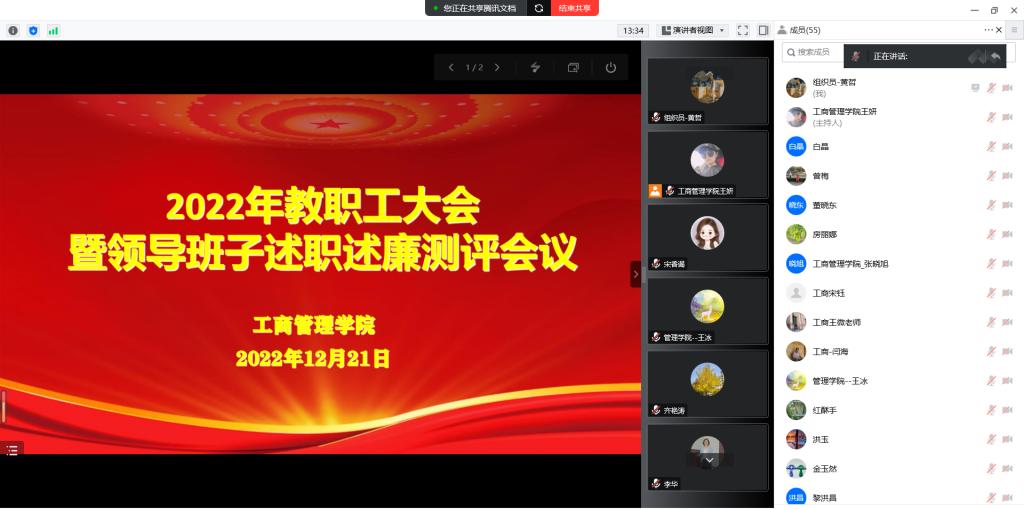 12月21日下午,工商管理学院召开2022年教职工大会暨领导班子述职述廉测评会议,校组织部组织员董德治出席,学院领导班子成员和全体教职工参加会议,会议由党委书记董文武主持。