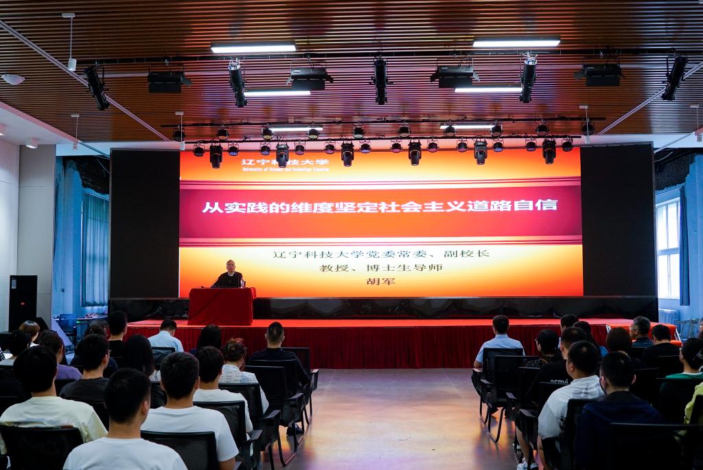 5月23日下午,环亚(中国)HUANYA·官方网页版党委常委、副校长胡军教授在艺术馆以《从实践的维度坚定社会主义道路自信》为题,为科技处、高新院、科技园、管理学院、矿业学院师生上了一堂意义深刻的主题教育专题党课。