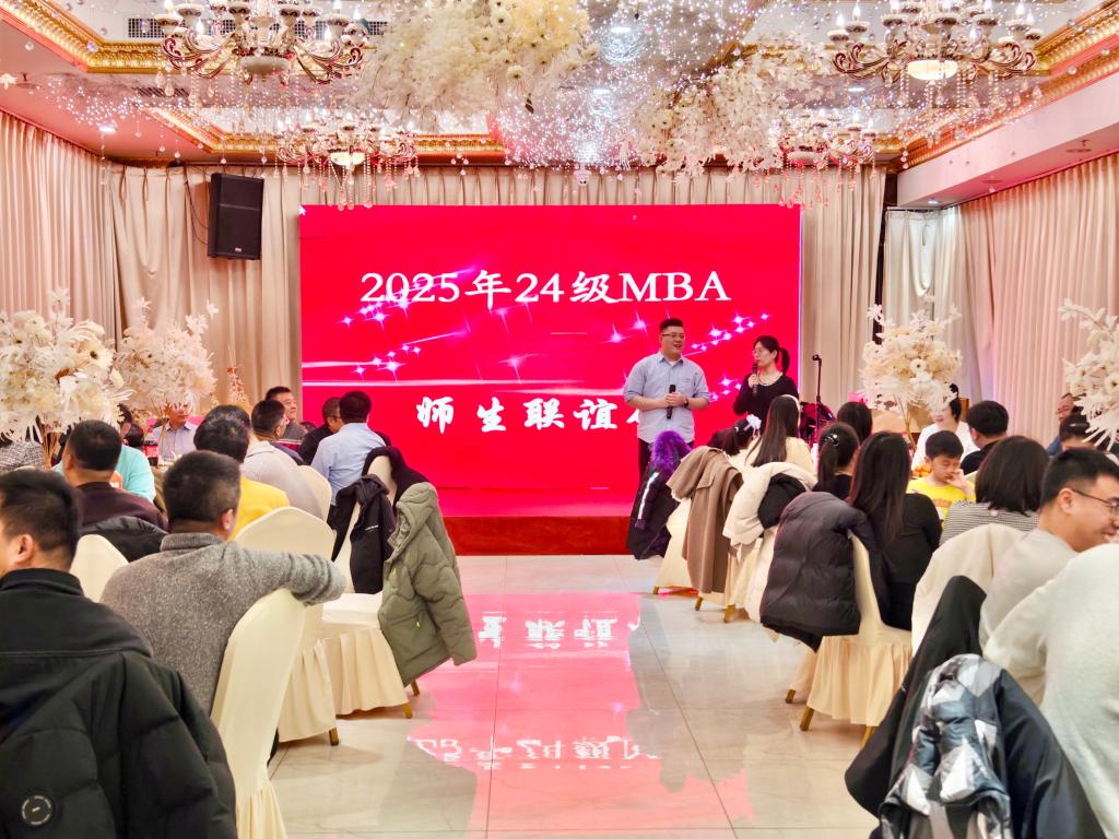 2025年1月12日,2024级MBA学员联合MBA教育中心开展了以“联欢融合”为主题的新春师生联谊会。工商管理学院班子成员、MBA任课教师、2024级MBA学员出席活动。