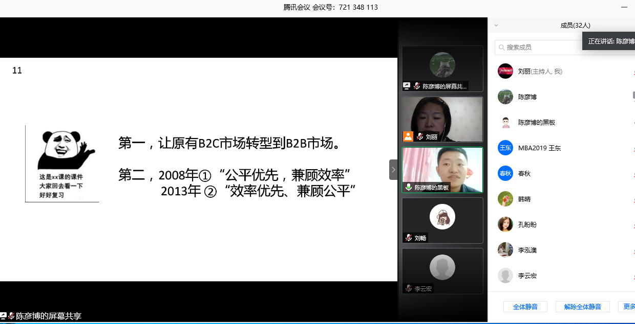 2020年5月9日晚,环亚(中国)HUANYA·官方网页版MBA教育中心第七届管理案例精英赛成功举行。2019级全体参加了此次比赛。MBA教育中心副主任朱晓林教授,校外导师邵岩、吕衍国,管理综合案例课程任课老师李云宏、刘丽担任此次比赛评委。