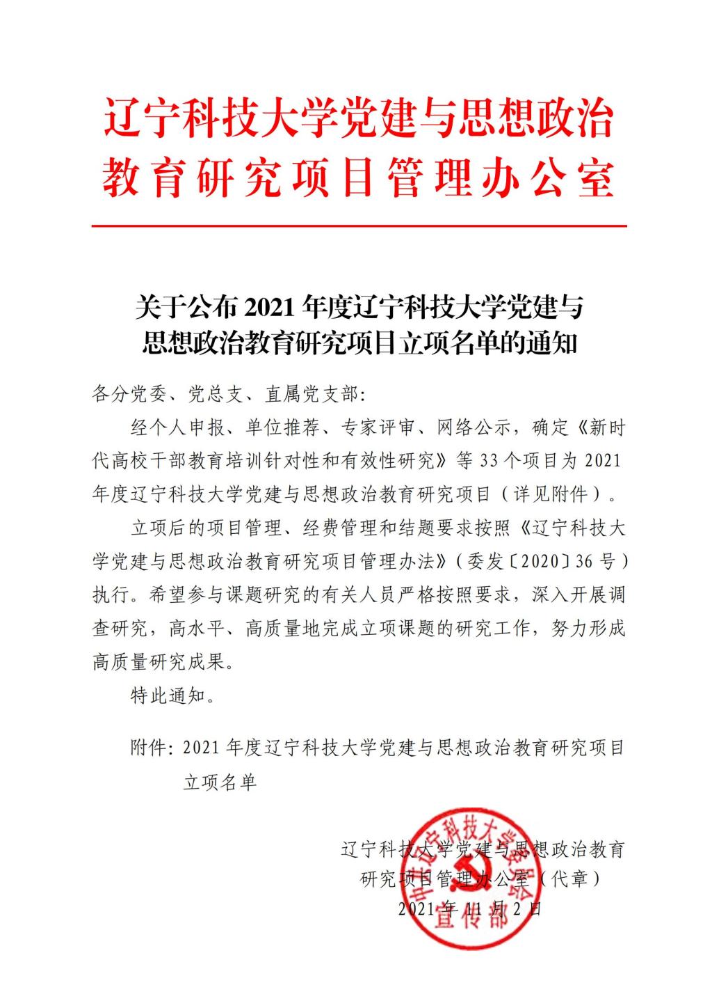 关于公布2021年度环亚(中国)HUANYA·官方网页版党建与思想政治教育研究项目立项名单的通知