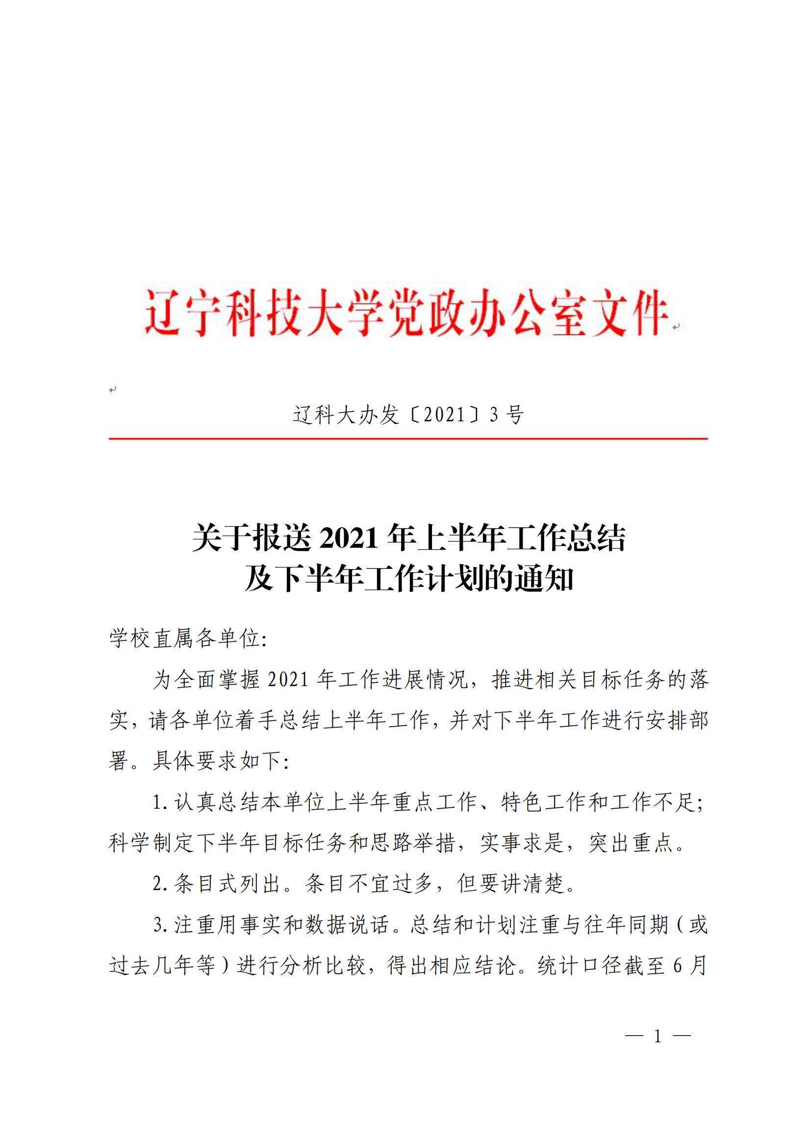 关于报送2021年上半年工作总结及下半年工作计划的通知