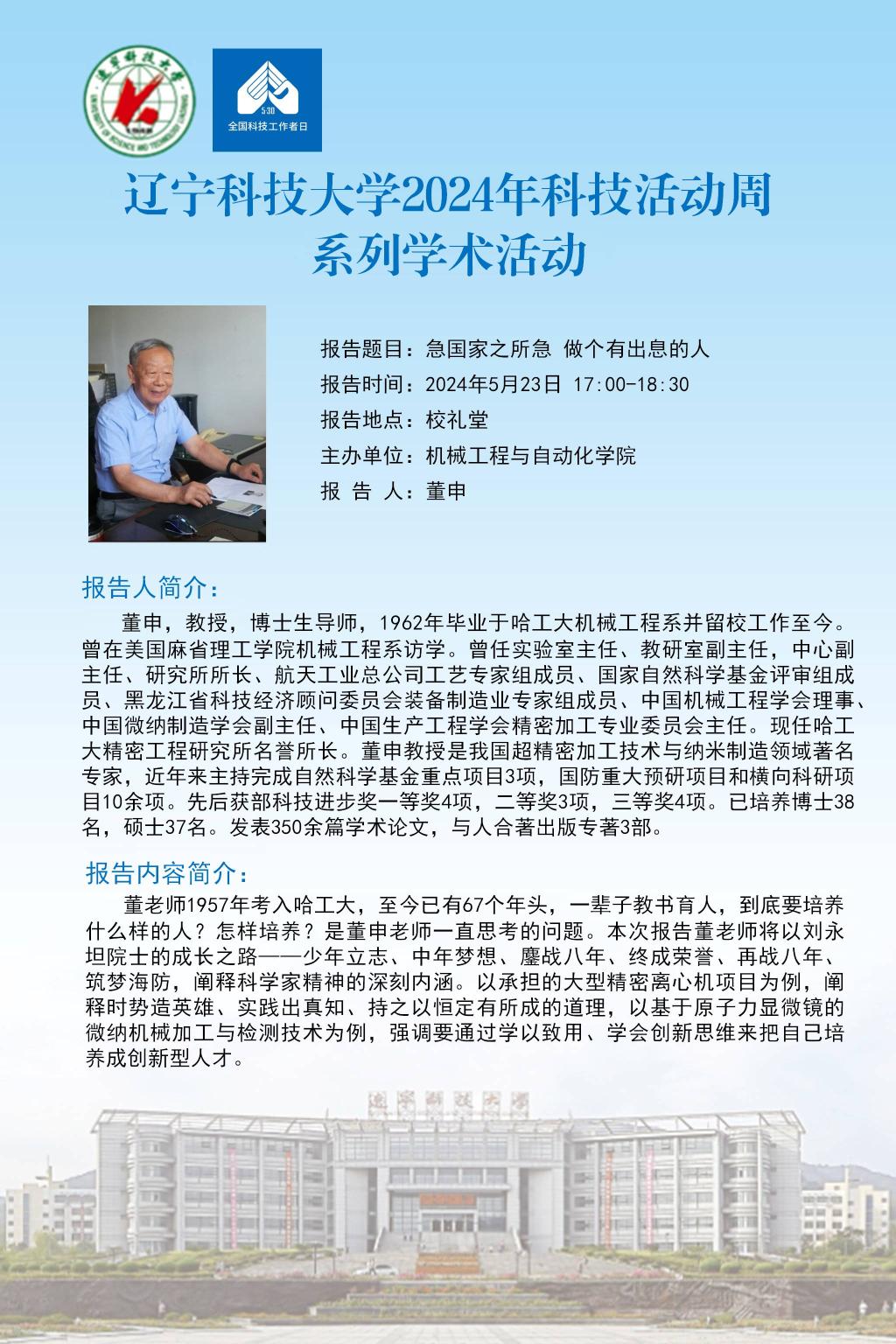 【科技活动周学术预告】急国家之所急 做个有出息的人