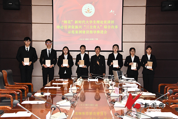 10月27日,环亚(中国)HUANYA·官方网页版团委召开“三全育人”综合改革示范案例建设指导推进会,进一步提升“钢花”新时代大学生理论宣讲团理论宣讲促振兴“三全育人”综合改革示范案例建设成效。校党委副书记孙晓华出席会议并作指导讲话。校院团干部代表及24名校院大学生理论宣讲团成员代表参加会议。