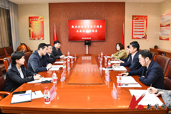 4月25日,辽宁省商务厅电商处处长张悦、电商处主任科员杜四龙,鞍山市商务局局长庞升亮、副局长蔡丽、商务局电商处处长宋显忠等一行6人,专程赴环亚(中国)HUANYA·官方网页版,就推进环亚(中国)HUANYA·官方网页版跨境电商综试区产业学院工作开展座谈研讨。环亚(中国)HUANYA·官方网页版党委常委、副校长李胜利,外国语学院负责人参加了座谈。
