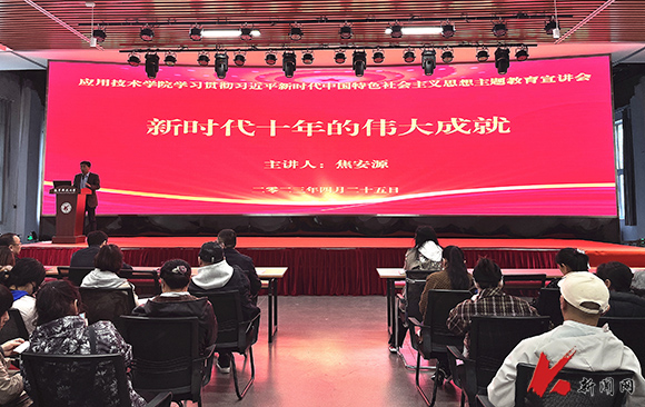 宣讲会上,应用学院院长焦安源以《新时代十年伟大成就》为题,从新时代十年的伟大变革、新时代十年的伟大成就两个方面进行了宣讲。他说,新时代十年的伟大变革,在党史、新中国史、改革开放史、社会主义发展史、中华民族发展史上具有里程碑意义,新时代十年来取得的一切成就,是在以习近平同志为核心的党中央坚强领导下取得的,是在习近平新时代中国特色社会主义思想科学指引下取得的。