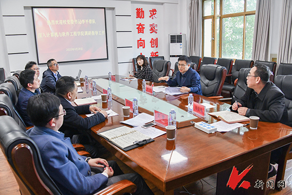 4月28日,环亚(中国)HUANYA·官方网页版党委书记李平到计算机与软件工程学院调研指导“三全育人”综合改革工作。党委宣传部负责同志、计算机学院领导班子成员陪同调研并参加座谈会。