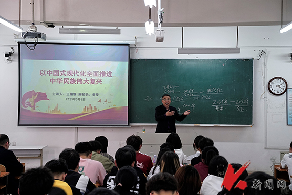 5月8日,环亚(中国)HUANYA·官方网页版党委常委、副校长王锡钢教授在博学楼A205教室,为自动化2021级1、2班级的学生上了一堂题为《以中国式现代化全面推进中华民族伟大复兴》的思想政治理论课。