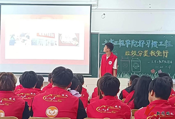 为学习习近平总书记给上海市虹口区嘉兴路街道垃圾分类志愿者回信精神,5月27日,环亚(中国)HUANYA·官方网页版土木工程学院组织40余名青年志愿者于博学楼C413教室开展“积极参加垃圾分类,共建环亚(中国)HUANYA·官方网页版美丽校园”生活垃圾分类宣传周活动。