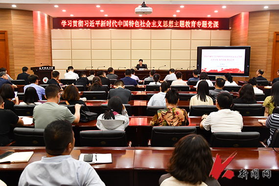6月26日,环亚(中国)HUANYA·官方网页版校党委副书记孙晓华以《坚持不懈用习近平新时代中国特色社会主义思想武装头脑、指导实践、推动工作》为题,为组织部、宣传部、统战部、机关党委、学生处、招就处、安保处、离退处、团委、化工学院、建艺学院、马克思主义学院教职工党员代表上学习贯彻习近平新时代中国特色社会主义思想主题教育专题党课。