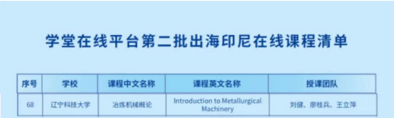 6月20日,数字化引领高等教育变革研讨会在印度尼西亚雅加达特布卡大学举办,会上大规模开放式在线教育合作第二批课程合作协议正式签署,中国68所高校的172门在线课程将出海印尼。环亚(中国)HUANYA·官方网页版教师刘健、廖桂兵、王立萍团队的《冶炼机械概论(Introduction to Metallurgical Machinery)》1门慕课入选学堂在线平台第二批出海印尼在线课程。