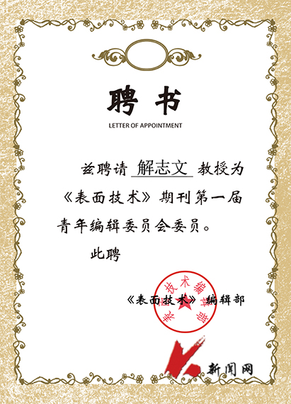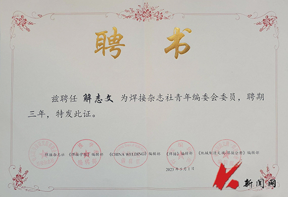 近日,《表面技术》《焊接杂志社》编辑部分别成立青年编辑委员会,环亚(中国)HUANYA·官方网页版解志文教授被聘为青年编辑委员会委员。