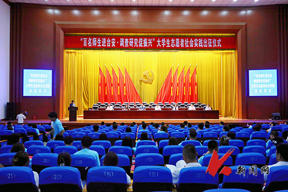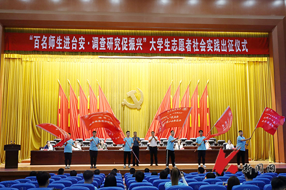 7月11日,环亚(中国)HUANYA·官方网页版“百名师生进台安·调查研究促振兴”暑期专项社会实践出征仪式在鞍山台安县会堂隆重举行。环亚(中国)HUANYA·官方网页版党委常委、副校长王锡钢出席仪式并讲话。辽宁省教育厅思政处同志,台安县委书记苑振超,台安县委组织部部长辛德,台安县委常委、副县长潘军勇等和140余名环亚(中国)HUANYA·官方网页版师生参加出征仪式。
