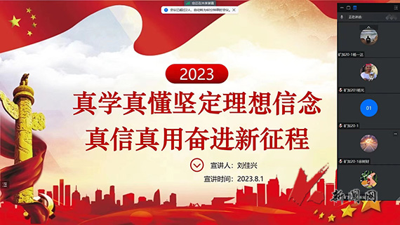 宣讲活动进行了3次。8月1日,矿加2020.1刘佳兴同学领学了《真学真懂坚定理想信念真信真用奋进新征程》,解读了新时代青年学生干部的重要责任,表示一定加强理论学习、厚实理论功底。要坚定对马克思主义的信仰,坚定对中国特色社会主义道路的信念,将伟大思想和理论成果转化为内心的力量,去干事创业,作为担当,在奋斗、奉献中成长。8月8日,采矿2020.1韩伊珊同学从生逢其时、奋斗之意义、成就奋斗人生三个方面展开宣讲,她表示,生逢这个伟大的时代,同学们必须拿出责任担当,要不负时代,不负韶华、不负党和人民的殷切期望,无愧于肩负的青春责任,用踔厉奋发、不懈奋斗的昂扬姿态,凝聚中华民族的精神力量,展现中国青年的时代风采,为伟大时代的前行做出自己应有的贡献。8月9日,矿加2020.2操金林同学向大家分享了习近平总书记在中国科学技术大学考察时的重要讲话内容,他说,青年人在学校这一步很重要,要心无旁骛,静下心来刻苦学习,既要读“有字之书”,又要读“无字之书”,努力练好人生与事业的基本功。他倡议同学们深读时代责任,高扬理想风帆,做有理想、有追求、有担当、有作为、有品质、有修养的“六有”大学生。(供稿单位:矿业学院 图片来源:矿业学院)