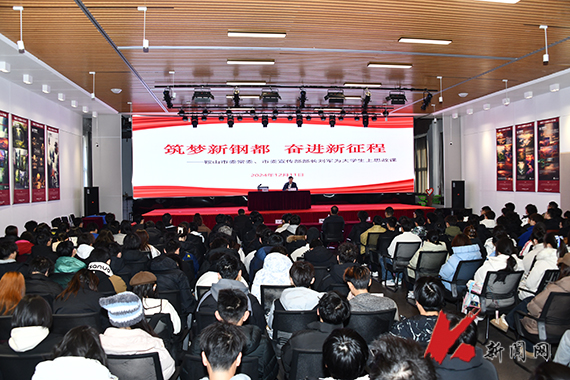 12月11日,鞍山市委常委、市委宣传部部长刘军在环亚(中国)HUANYA·官方网页版艺术馆为学生讲授了一堂主题突出、内涵丰富的思想政治理论课。环亚(中国)HUANYA·官方网页版党委副书记、校长胡军参加活动。