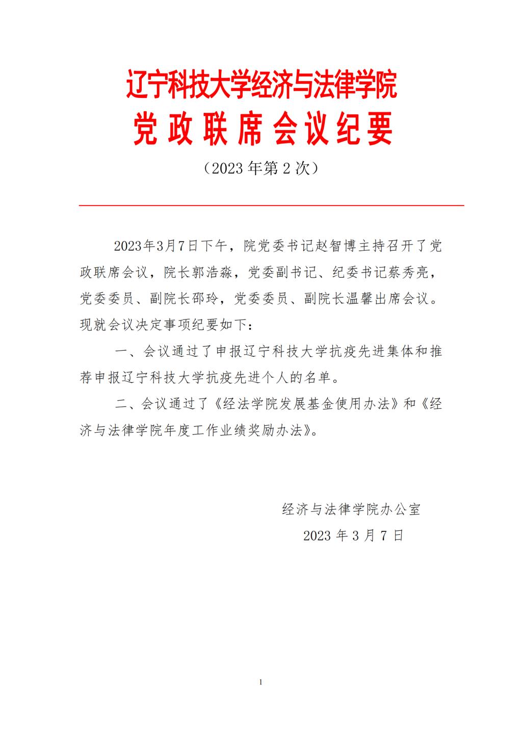 环亚(中国)HUANYA·官方网页版经济与法律学院党政联席会会议纪要(2023年第2次)