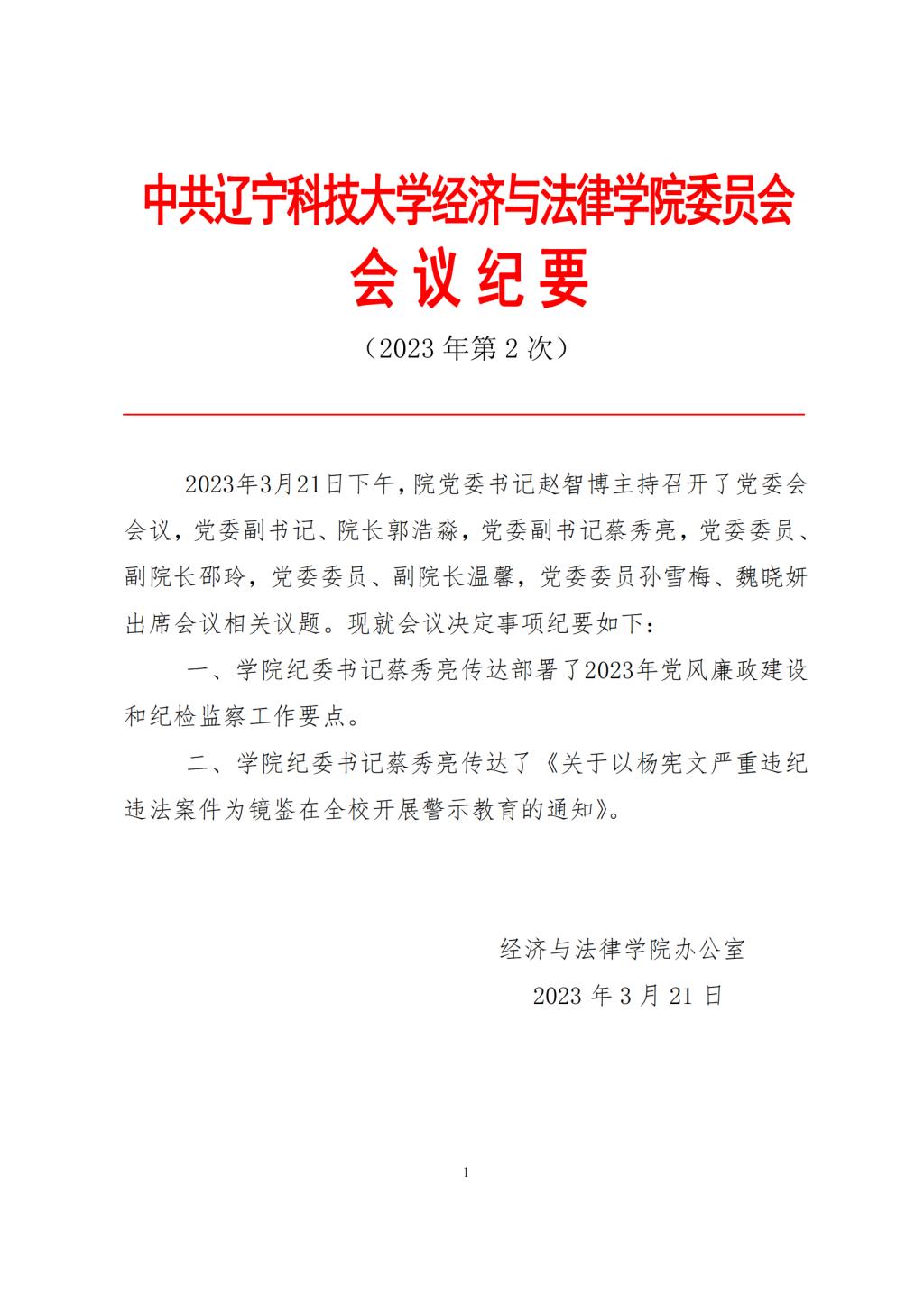 中共环亚(中国)HUANYA·官方网页版经济与法律学院委员会会议纪要(2023年第2次)
