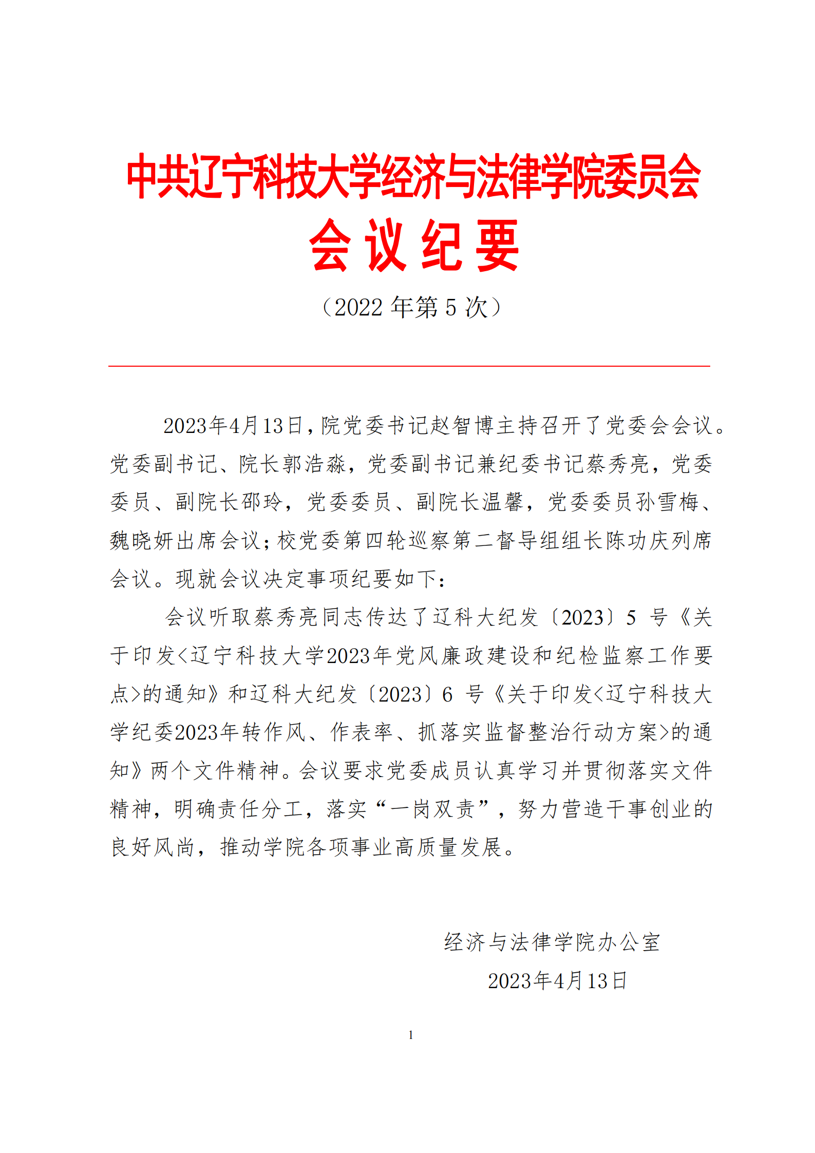 中共环亚(中国)HUANYA·官方网页版经济与法律学院委员会会议纪要(2023年第5次)