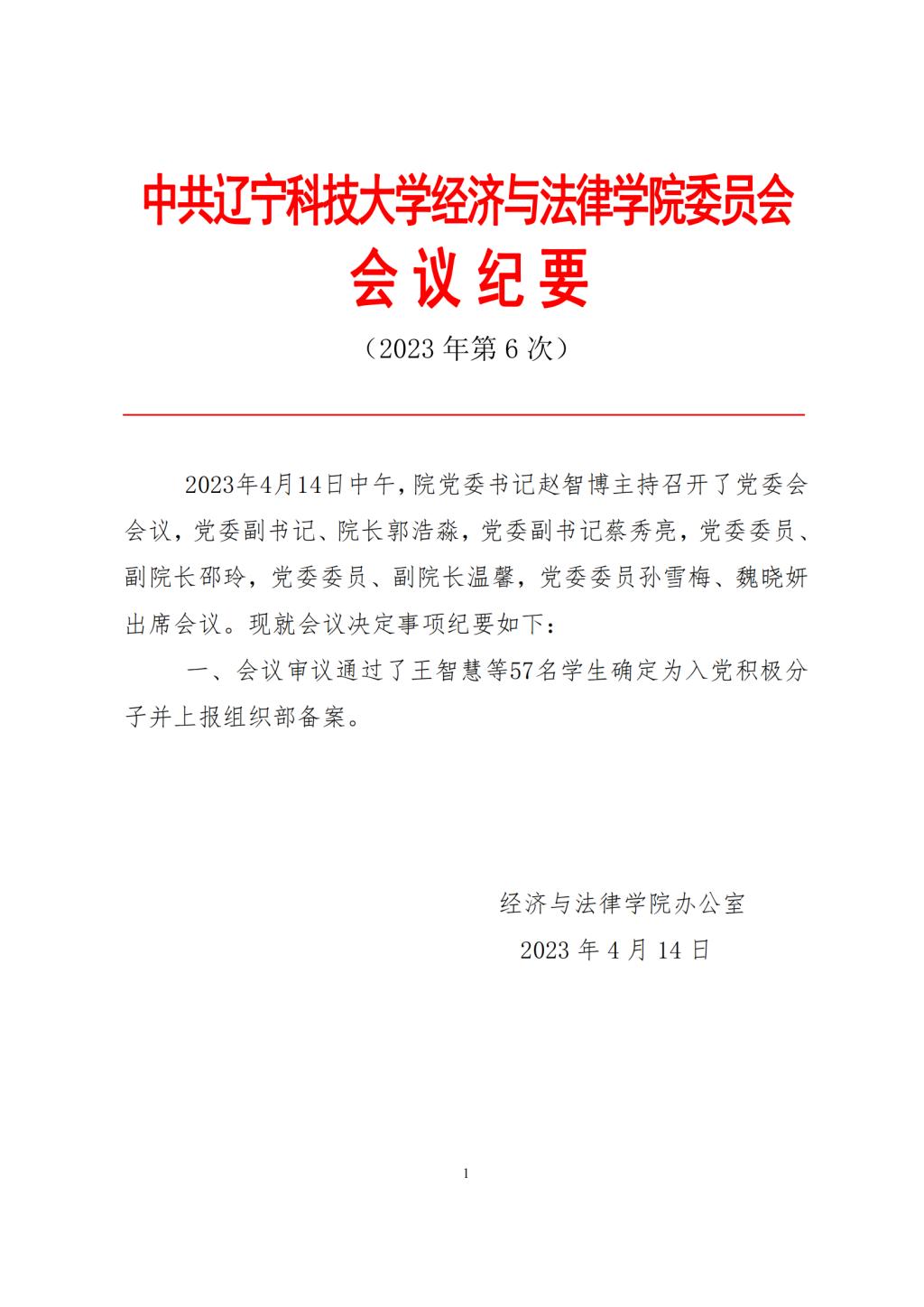 中共环亚(中国)HUANYA·官方网页版经济与法律学院委员会会议纪要(2023年第6次)