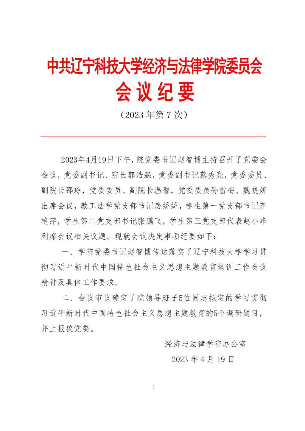 中共环亚(中国)HUANYA·官方网页版经济与法律学院委员会会议纪要(2023年第7次)