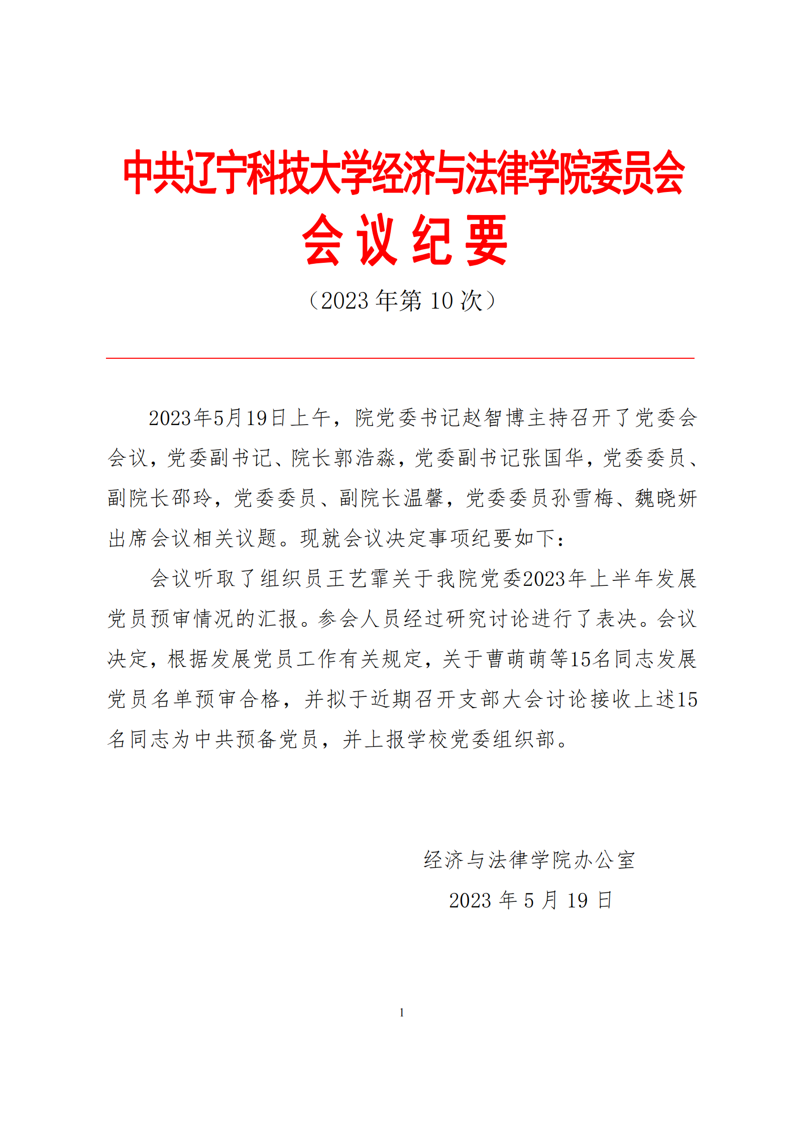 中共环亚(中国)HUANYA·官方网页版经济与法律学院委员会会议纪要(2023年第10次)