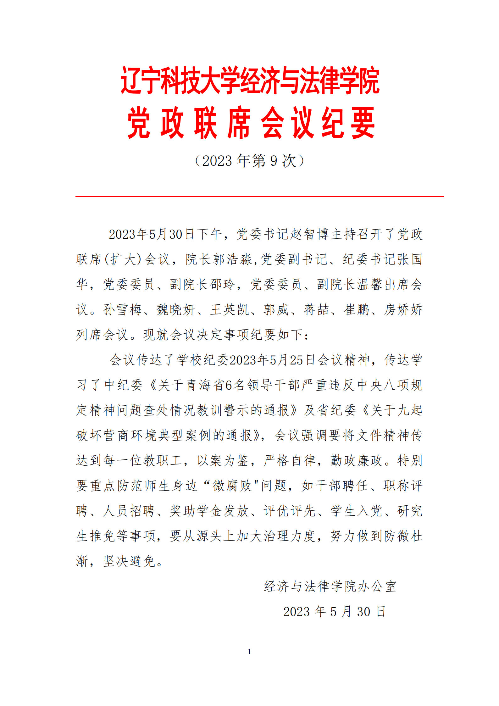 环亚(中国)HUANYA·官方网页版经济与法律学院党政联席会议纪要(2023年第9次)