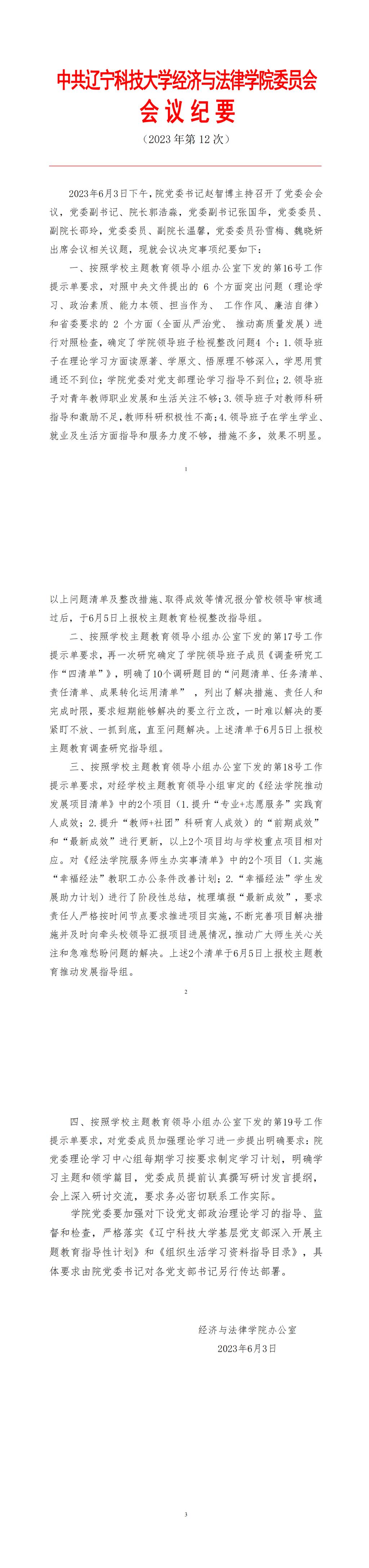 中共环亚(中国)HUANYA·官方网页版经济与法律学院委员会会议纪要(2023年第12次)