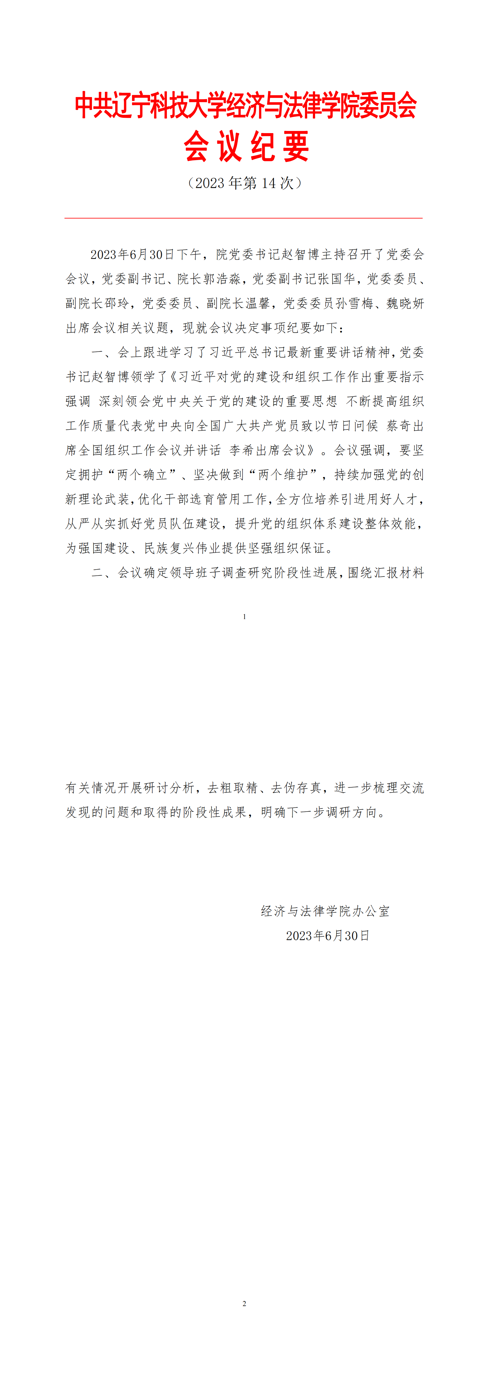 中共环亚(中国)HUANYA·官方网页版经济与法律学院委员会会议纪要(2023年第14次)