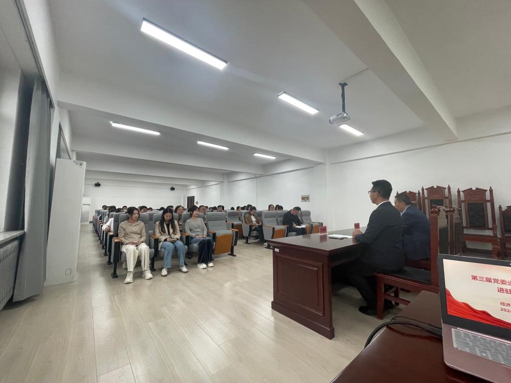 2024年9月25日下午,经法学院在博识楼A402会议室召开第三届党委巡察“回头看”工作动员会。会议由学院党委书记赵智博主持,第三届党委巡察组全体成员、经法学院全体教师及部分学生代表参加会议。