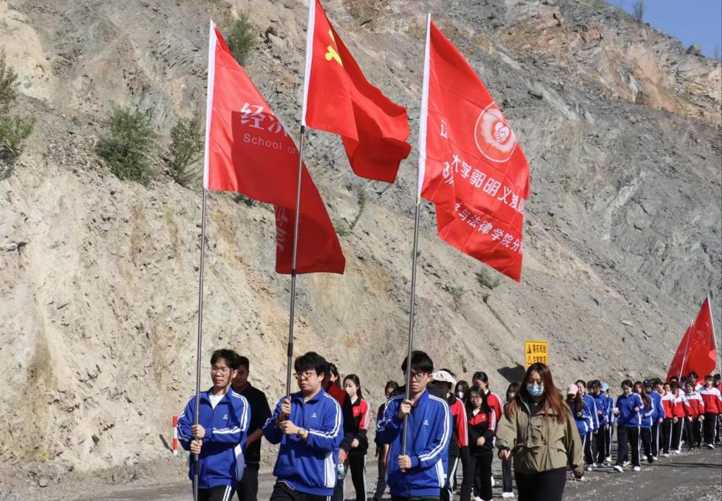 4月26日,经法学院师生跟随“暖风”郭明义爱心团队走进齐大山铁矿公路采石场,开展“大手拉小手,跟着郭明义走矿山路”主题党日活动。学院党委书记赵智博、党委副书记张国华、团委副书记张鹏飞、组织员王艺霏带领40余名经法学子前往矿山,参加此次活动。