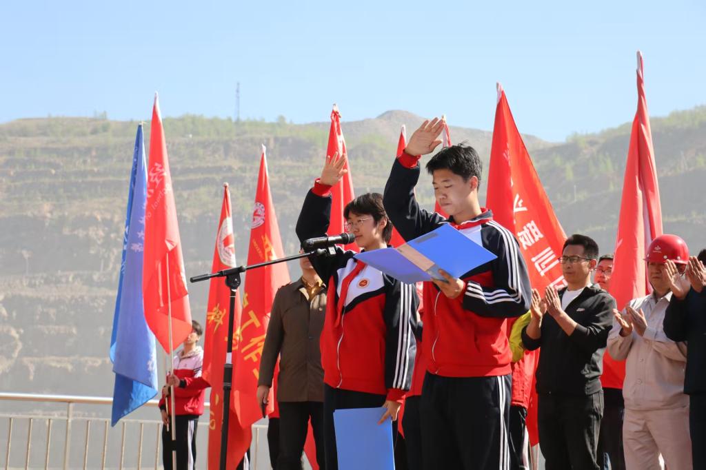 活动当日,参与师生共同前往齐大山铁矿公路采石场,跟随“暖风”郭明义爱心团队徒步3公里矿山路。烈日下,学生们切身感悟到矿工日常劳作的艰辛。到达观景台后,活动正式拉开序幕。主持人宋昕首先介绍出席的领导和嘉宾,小学生代表为工人系上红领巾,同时校“暖风”团队学生代表为工人献上爱心礼物。