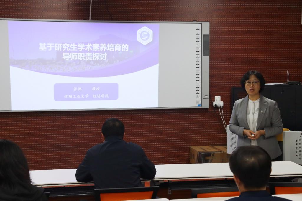 10月15日,经法学院于博识楼A407召开了硕士研究生导师培训会,邀请沈阳工业大学张弛教授做《基于研究生学术素养培育的导师职责探讨》讲座。