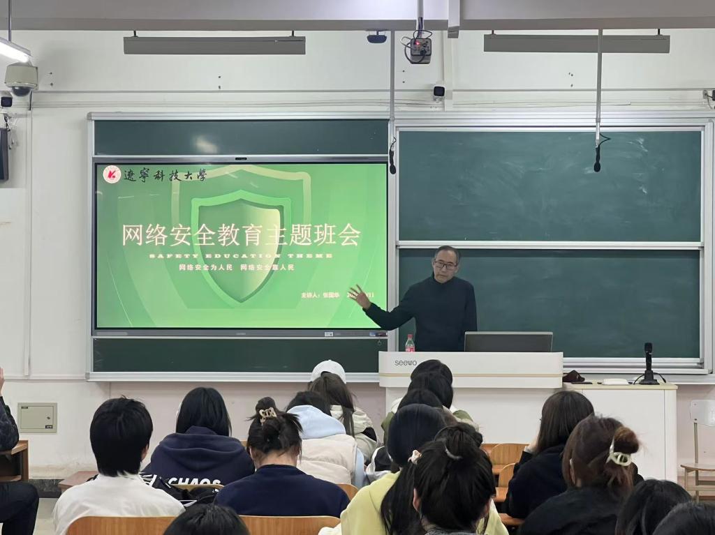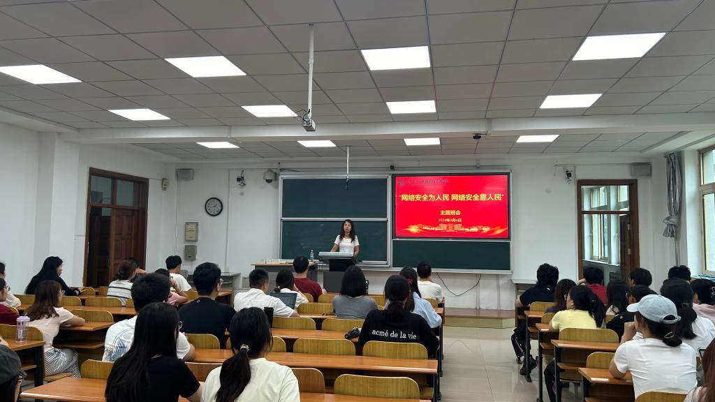 辅导员以“网络安全为人民,网络安全靠人民”为主题,利用多媒体资源,向学生详细介绍了网络安全的基本概念,包括网络安全法律法规、个人信息保护、网络诈骗防范等方面的知识,并结合生活中的实际案例,如网络诈骗的手段、个人信息泄露的后果等,让学生直观地认识到网络安全的重要性,引导学生树立正确的国家网络安全观念。同时,学生分享自己在网络使用过程中遇到的安全问题以及处理方法,同学们纷纷表示对国家网络安全和网络规范有了更清晰的认识,进一步认识到了维护网络文明、拒绝网络暴力是每个人的责任。