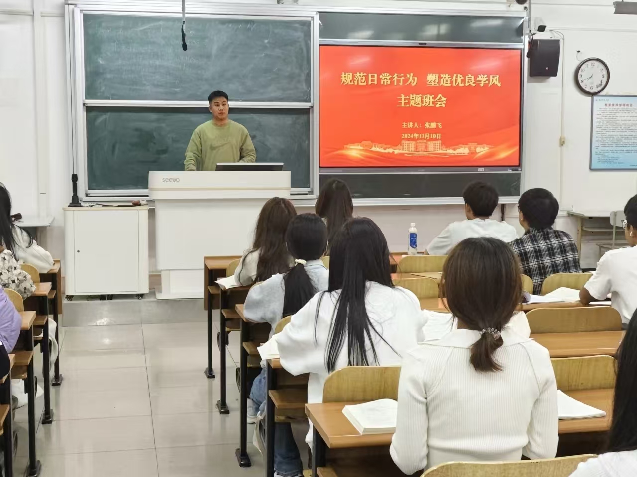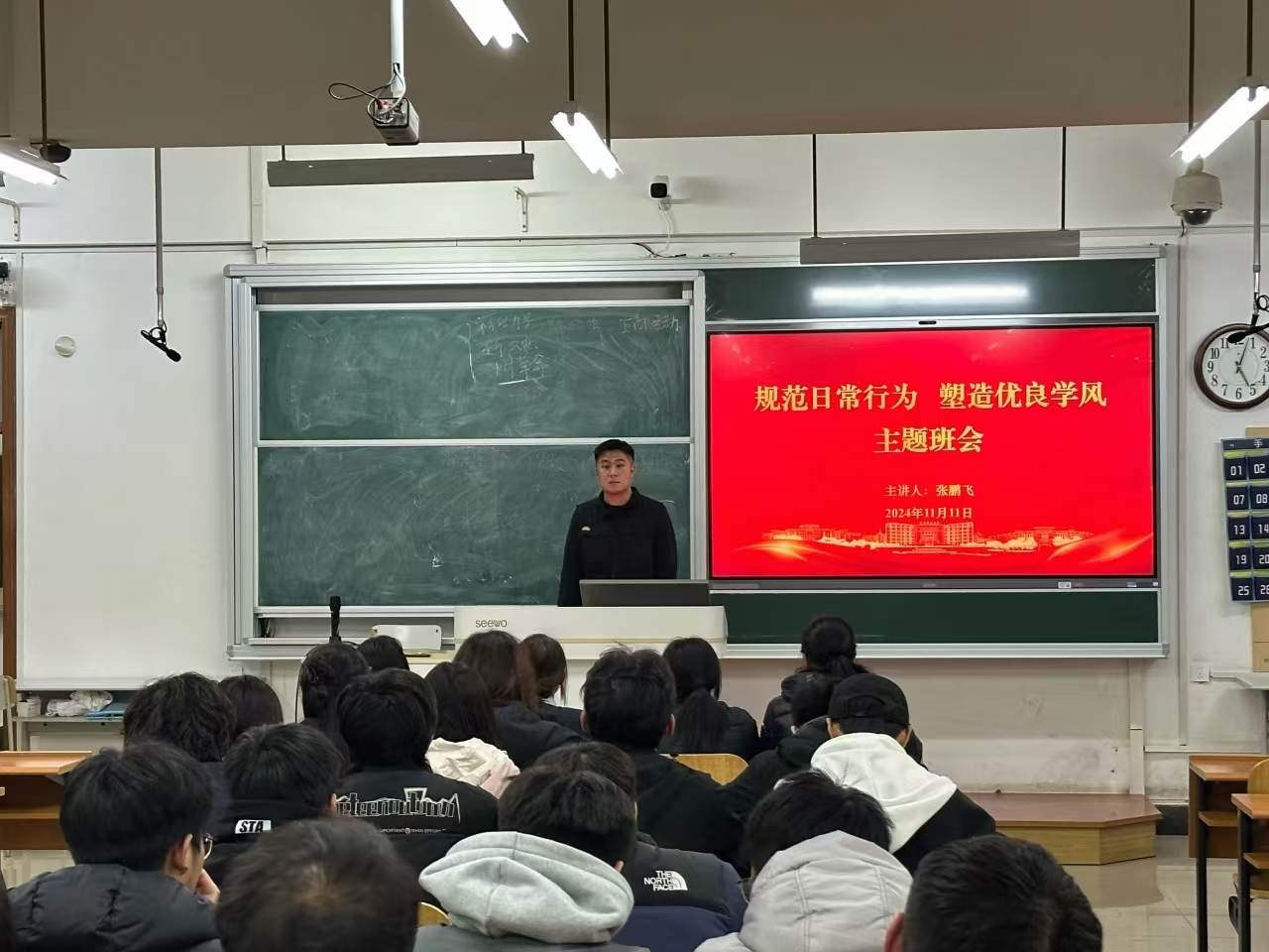 辅导员以“教育学生遵规守纪,引导学生养成良好行为习惯”为主题,强调要认真学习学校的各项规章制度,以浓厚学习风气、创造优美环境、维护良好秩序为重点,引导学生强化日常行为养成,明确学习目标,端正学习态度,自觉树立新时代大学生良好形象。辅导员对学生提出以下四点要求:一是做到仪容整洁、举止文雅,公共场合文明用语、不大声喧哗;二是严禁在教学楼、图书馆、寝室等公共场所吸烟;三是异性同学交往,做到自尊自爱,举止文明,言行得体,注重公共场合形象;四是自觉遵守国家互联网法律法规,规范网络言行等。