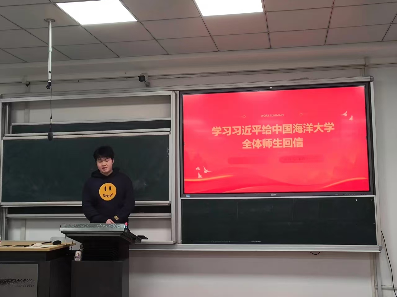 辅导员围绕“学习习近平给中国海洋大学全体师生回信”这一主题,对习近平总书记的回信内容展开深入解读。辅导员指出,科技创新于当代中国社会意义非凡,在建设社会主义现代化强国的征程中,必须坚定不移地坚持科学发展观,践行科教兴国战略。同时鼓励学生努力学习专业知识,积极投身于科技创新的伟大实践,将个人理想信念与国家发展、民族复兴紧密相连,争做勇于担当、敢于创新的时代新人。