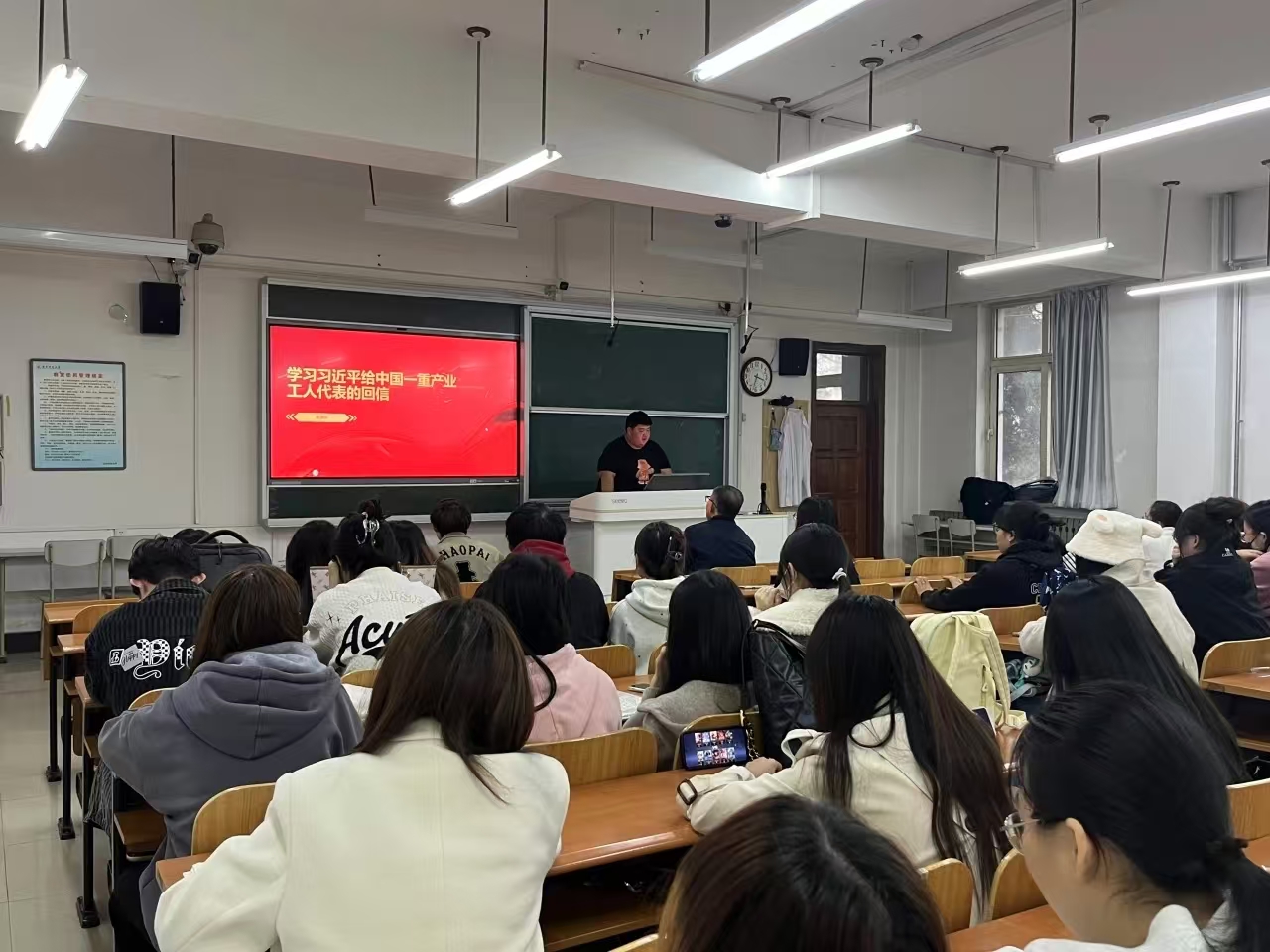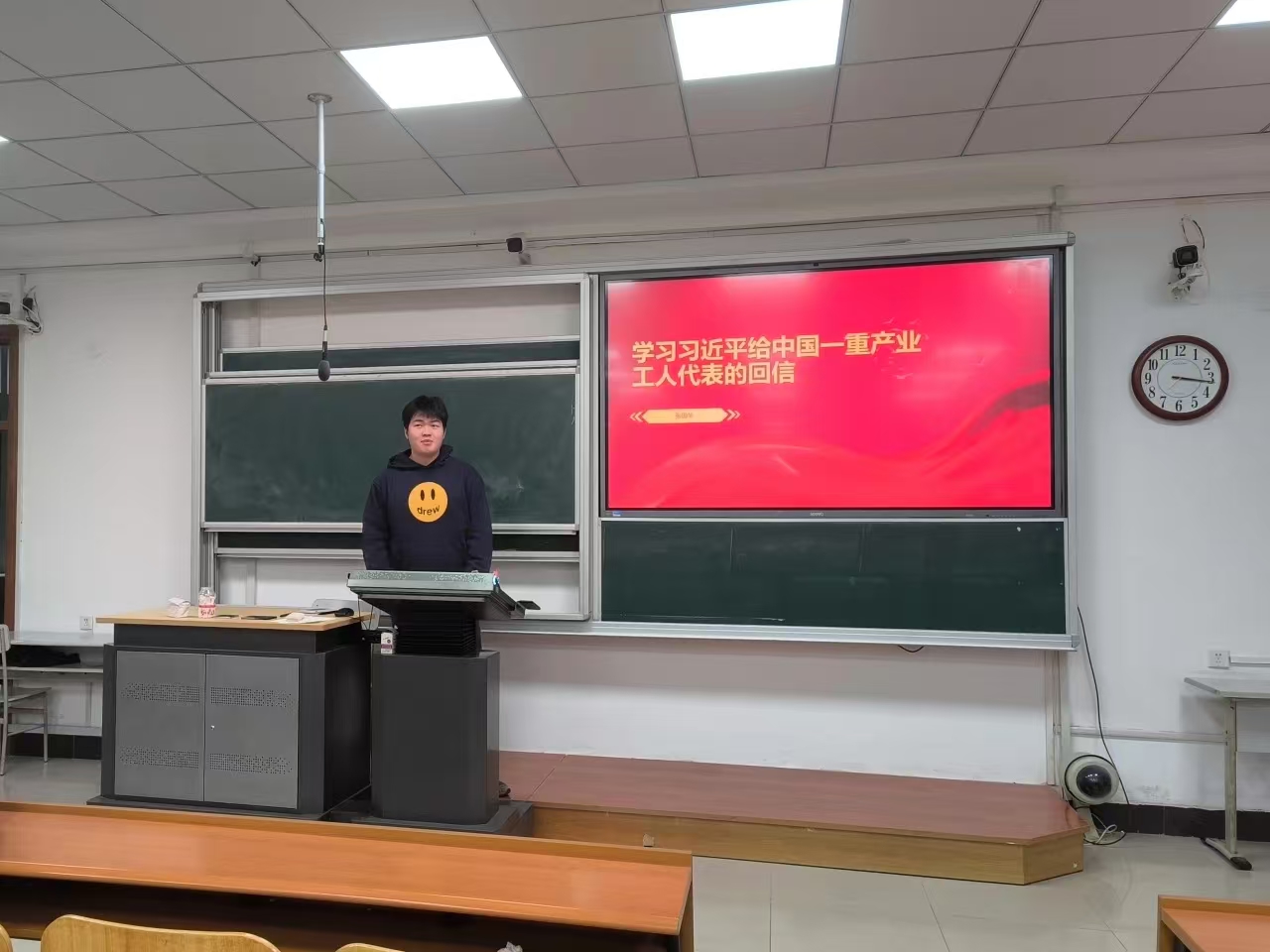 辅导员以“学习习近平给中国一重产业工人代表的回信”为主题,以一段段感人的现实故事为引,向同学们展现了新时代的劳模精神、劳动精神和工匠精神,让学生充分意识到加强自身建设、提升自身本领的重要性。同时,辅导员充分调动学生的积极性,在分享事例的同时,加强与学生的互动,希望同学们努力锤炼品德修为,打造过硬本领,为推动建设制造强国贡献智慧与力量。