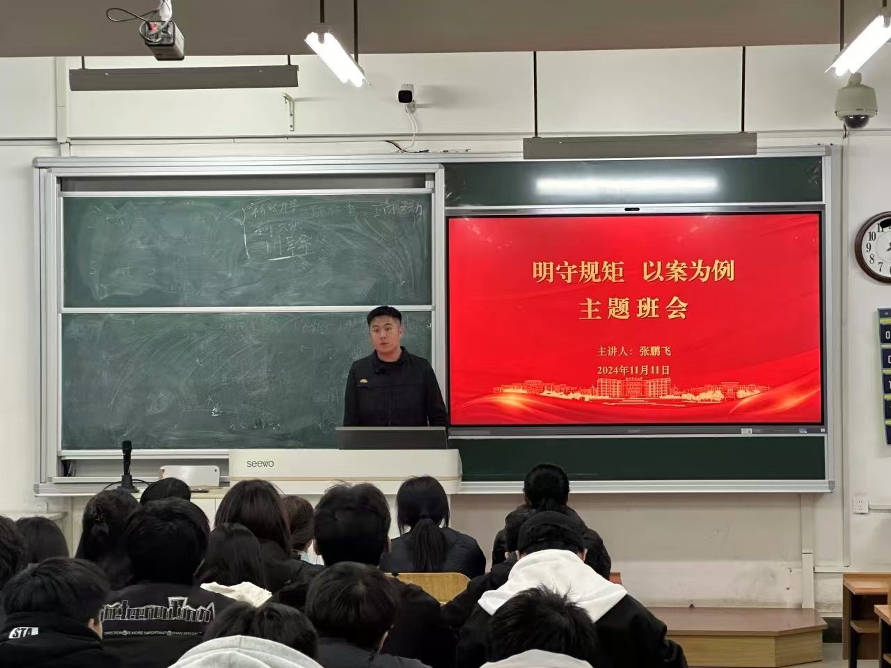 辅导员以“明规守纪,以案为例”为主题,带领学生学习《普通高等学校学生管理规定》《高等学校学生行为准则》等规章制度。辅导员引入违纪学生的真实案例,重点针对违纪行为和处理等内容进行了详细讲解。辅导员希望同学们能够自觉规范自身行为,在生活和学习中养成良好习惯,做到自觉学纪、准确知纪、心中明纪、严格守纪,共同营造良好的校园环境。
