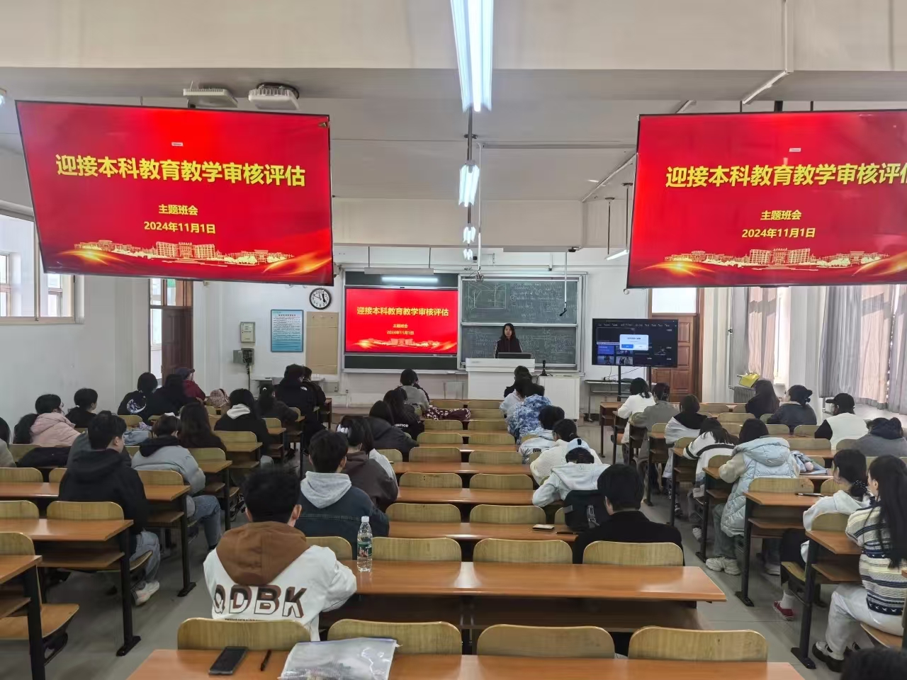 辅导员以“迎接本科教育教学审核评估”为主题,带领学生共同学习审核评估相关政策文件,希望同学们做到在细节处约束自身行为,将规范落实到生活中的方方面面,争做新时代文明大学生,为打造和谐校园贡献青春力量。